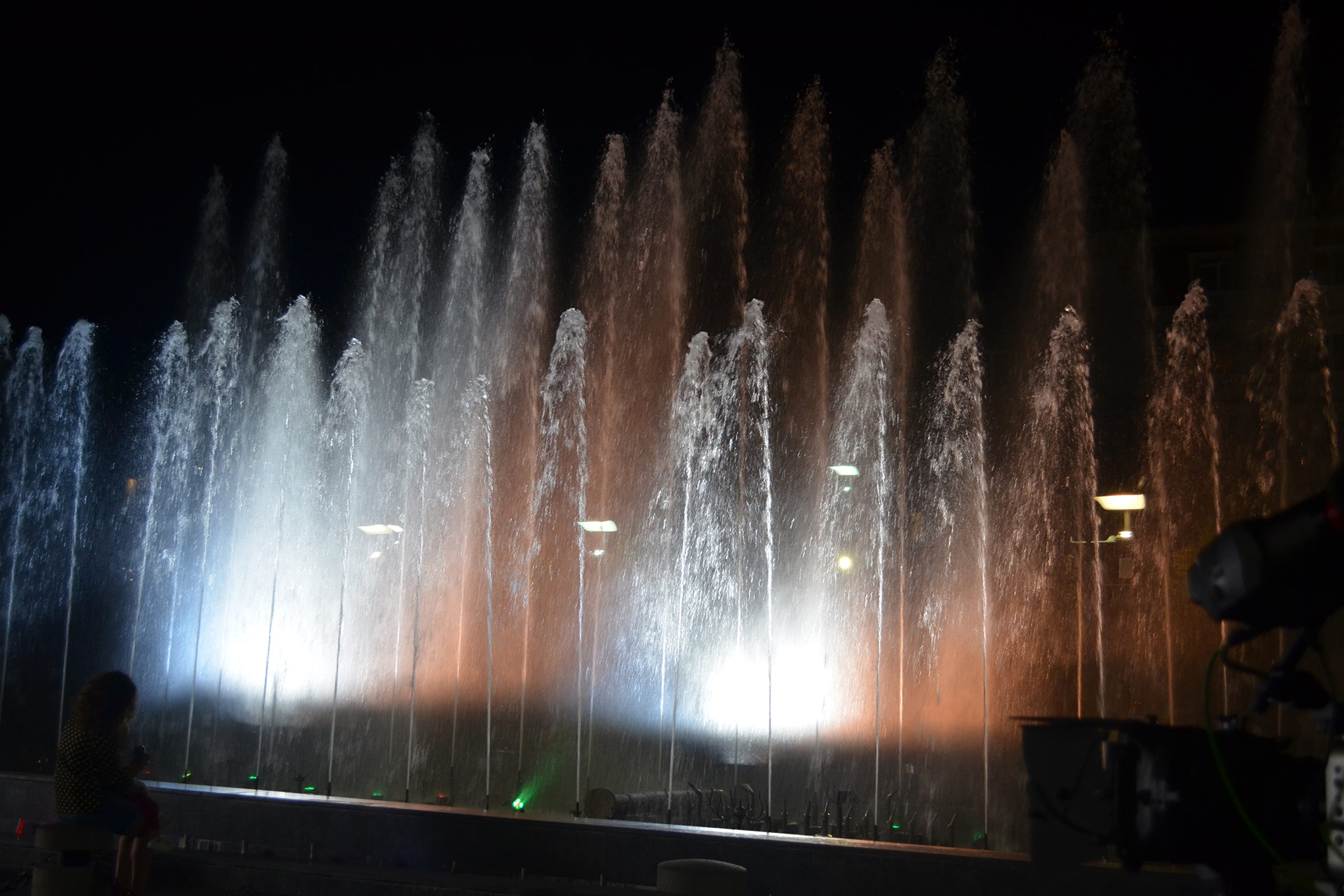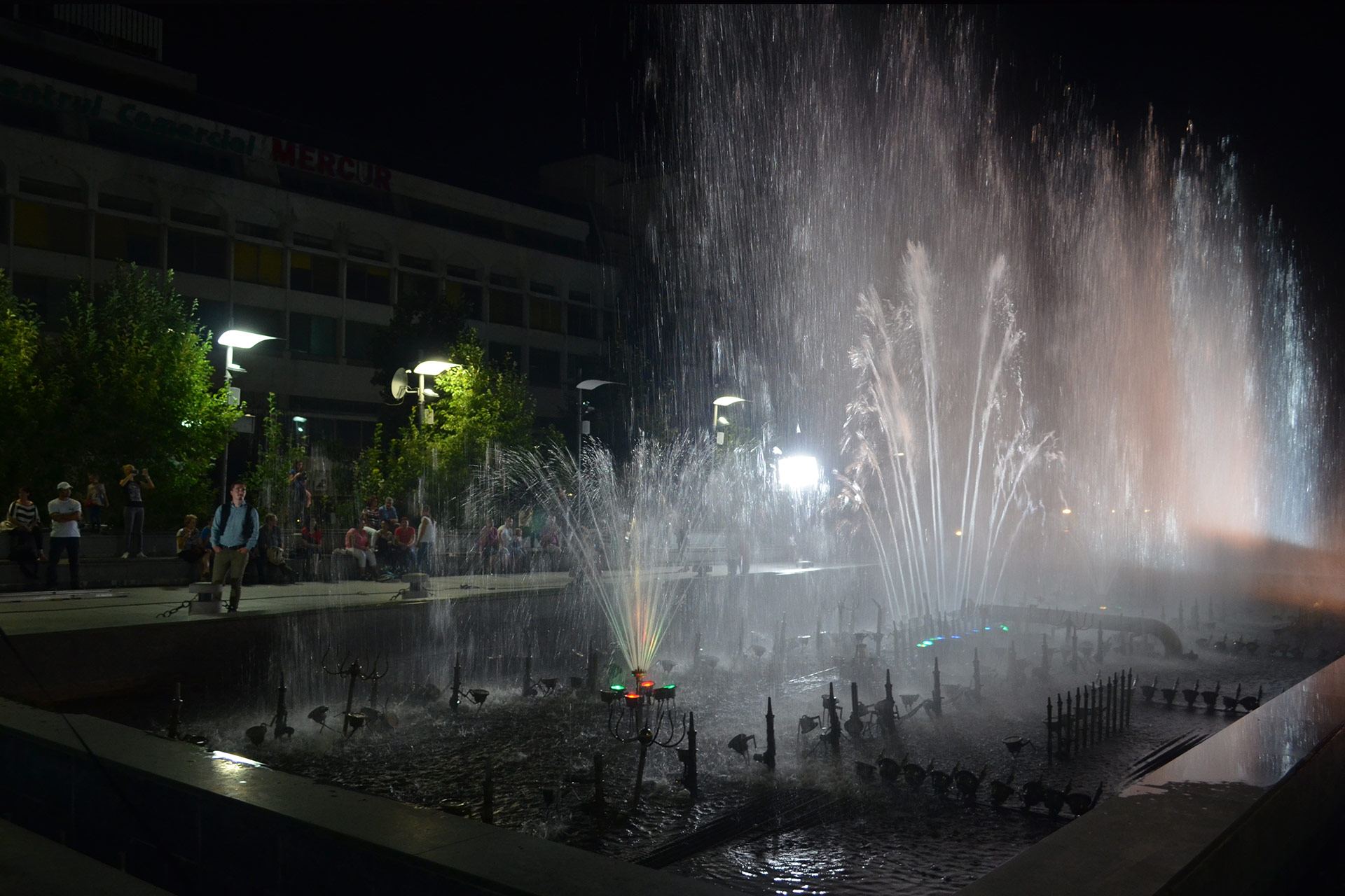 Elementul de atracţie maximă l-a constituit încă de la finalizarea lucrărilor ansamblul de fântâni arteziene. Spectacolul acvatic se realiza în 7 culori, iar pe ecranul de apă se puteau face proiecţii video şi efecte laser. Puteau fi programate 8 tipuri de mişcări ale apei, de la ondulare şi jet spumant, până la efect de bătăi de aripi şi evantai. Comanda echipamentelor componente se realiza centralizat, iar coregrafia spectacolelor, la care se adăuga şi coloană sonoră, se executa pe computer.