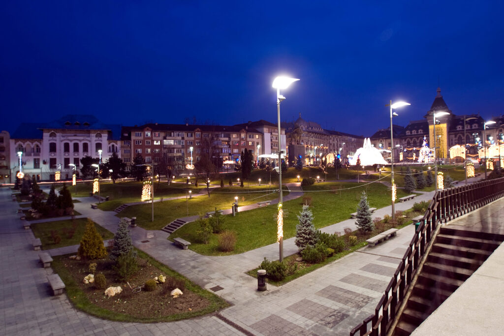 Acesta a fost primul proiect de remodelare şi înfrumuseţare urbană realizat în România. Echipa TIU a avut misiunea de a realiza următoarele lucrări: fântâni arteziene şi lasere, iluminat stradal, arhitectural şi ornamental, afişaj şi sonorizare publică, reţele de apă şi canalizare, arhitectură peisagistică.